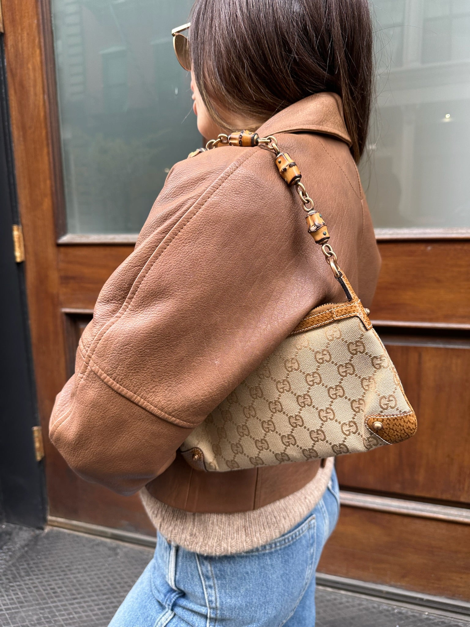 Gucci by Tom Ford Brown CC Canvas Horsebit Bag